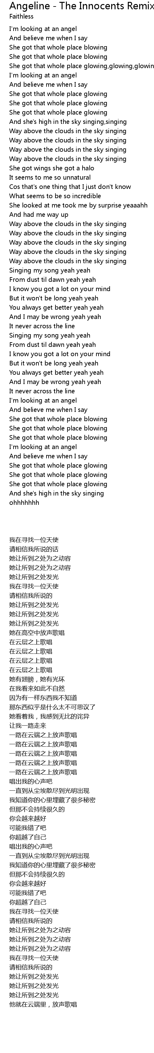 Angeline - The Innocents Remix Lyrics
