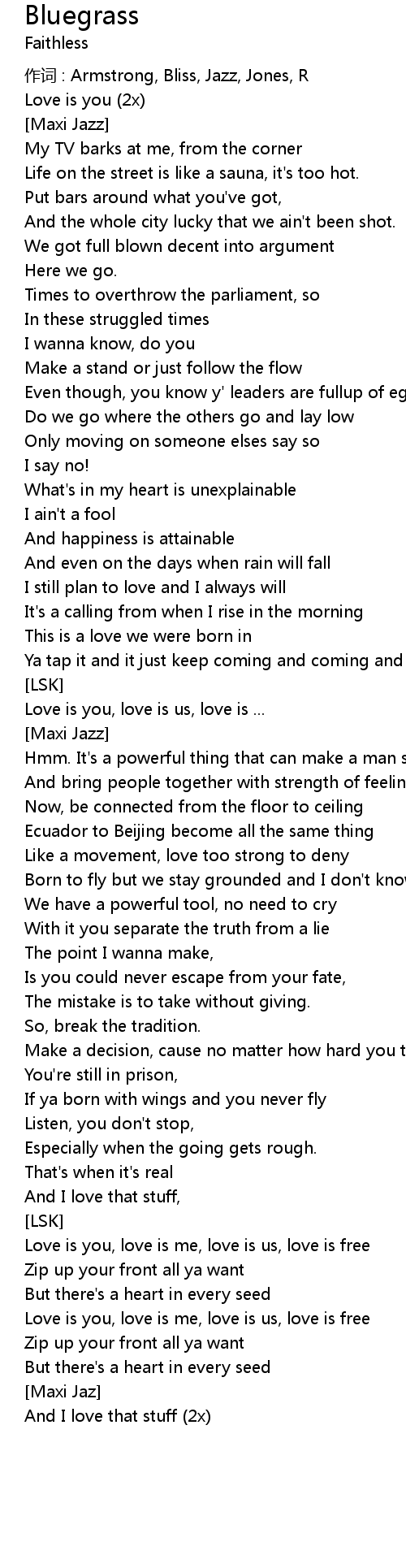 | 作词 : Armstrong, Bliss, Jazz, Jones, R | |
