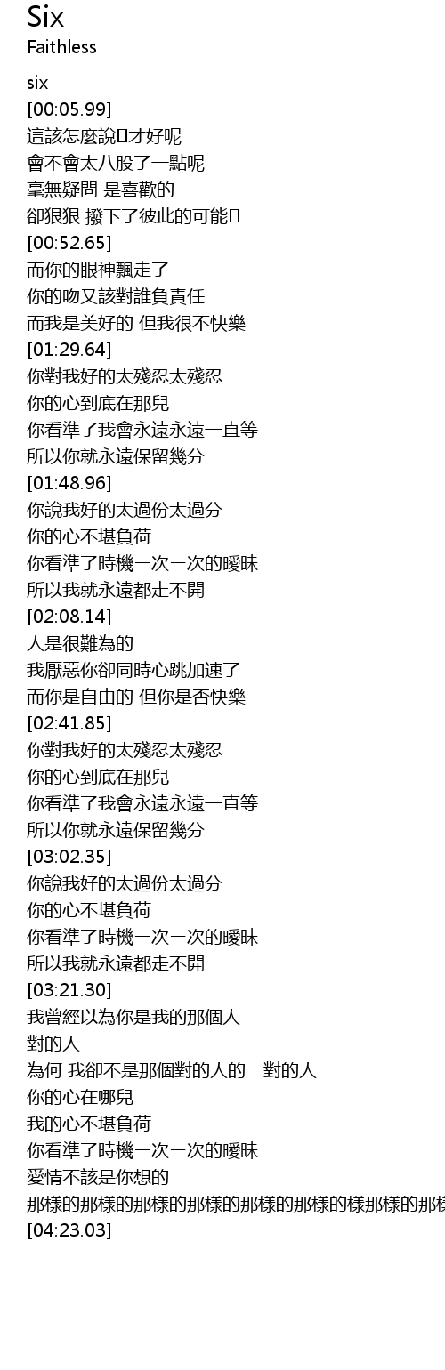 | [04:14.02] | 那樣的那樣的那樣的那樣的那樣的那樣的樣那樣的那樣的那樣的 |