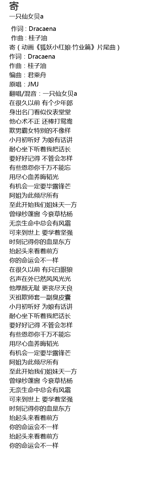 | [00:01.976] | 寄(动画《狐妖小红娘·竹业篇》片尾曲) |