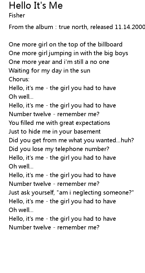 | Hello, it' s me the girl you had to have | |