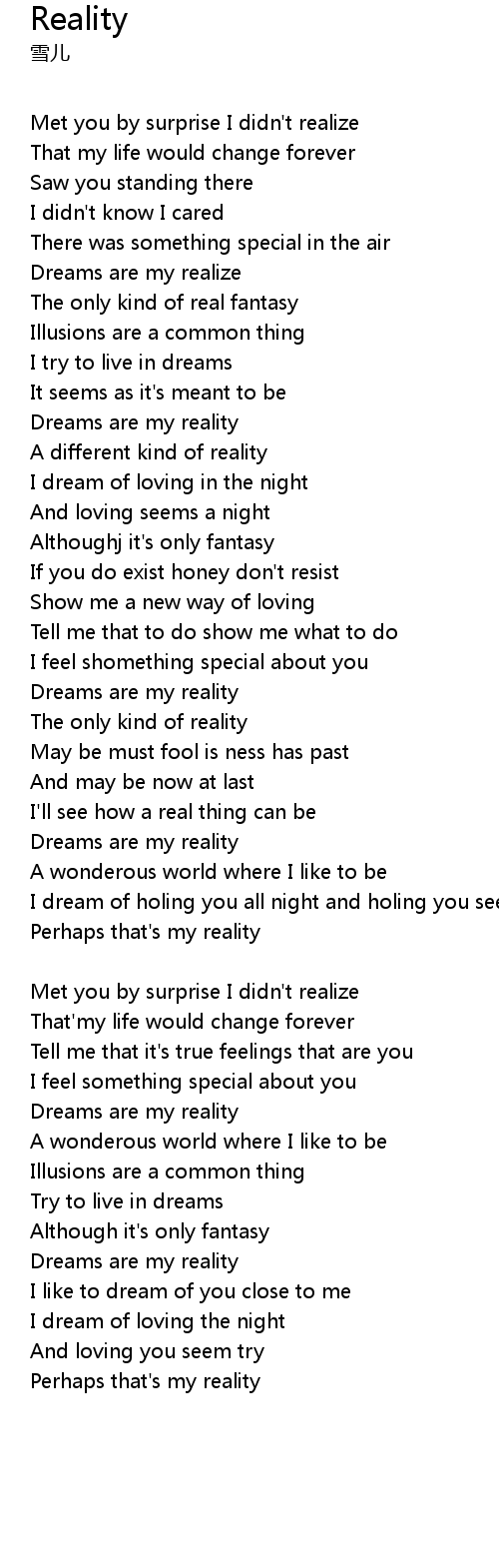 | Song | Reality |