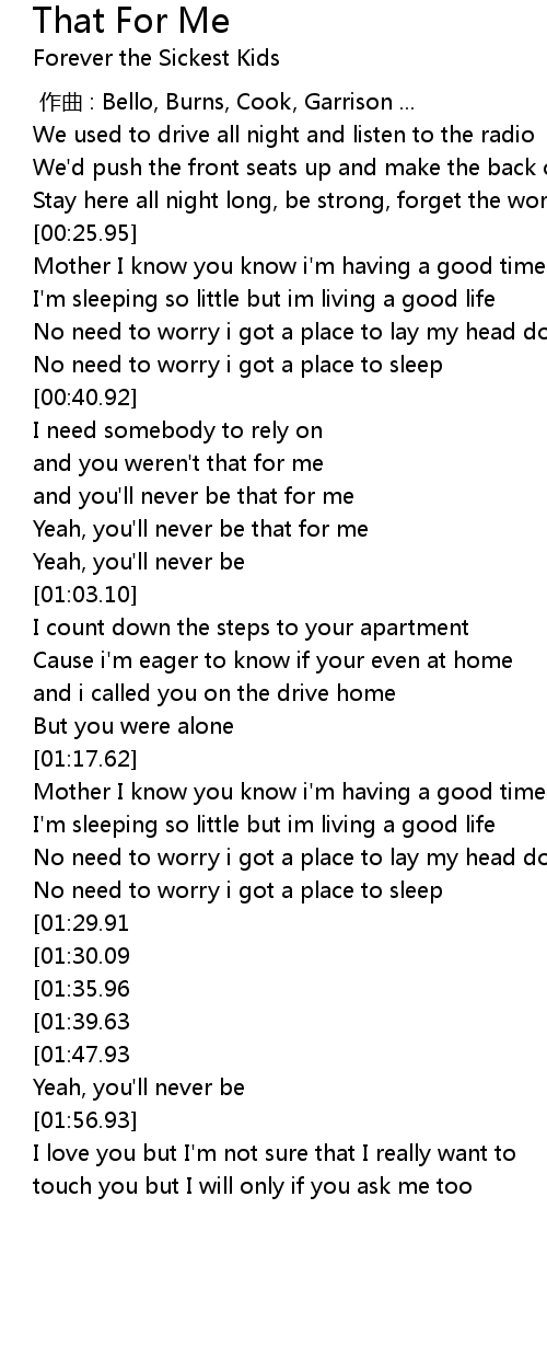 | [02:51.07][01:47.93] | Yeah, you' ll never be that for me |