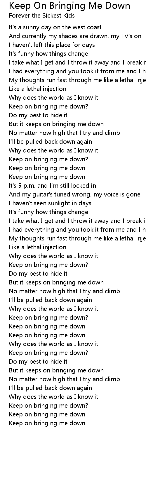 Keep on bringing me down? |