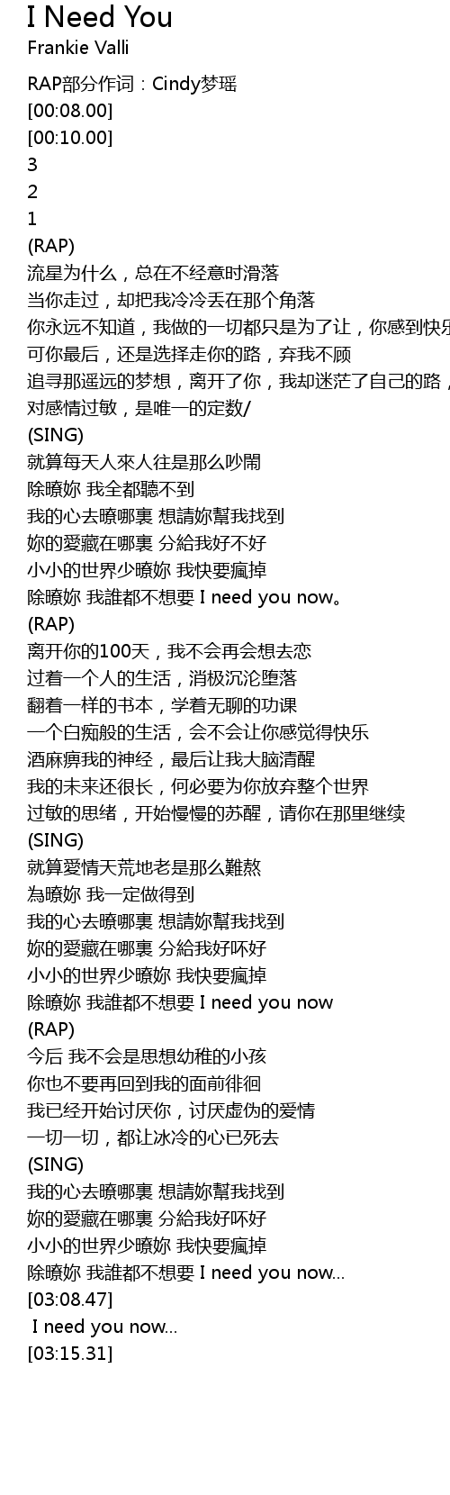 | [03:00.86] | 除暸妳 我誰都不想要 I need you now... |