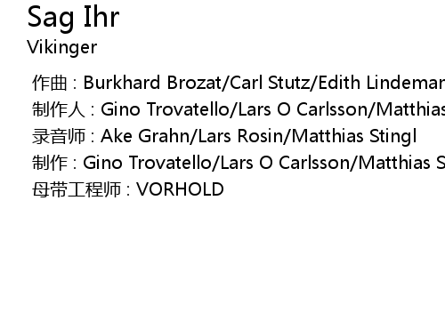 | [00:00.000] | 作曲 : Burkhard Brozat/Carl Stutz/Edith Lindeman |