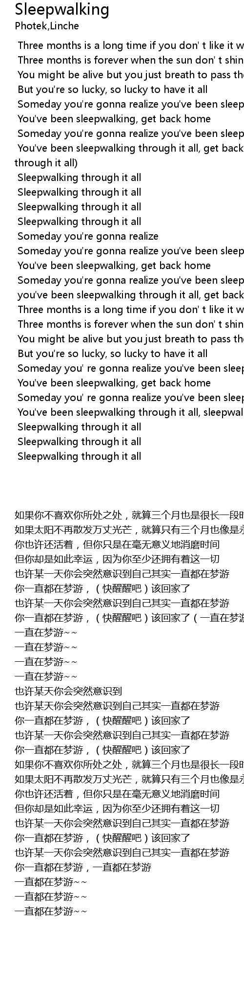 | [00:46] | You've been sleepwalking through it all, get back home (sleepwalking through it all) |