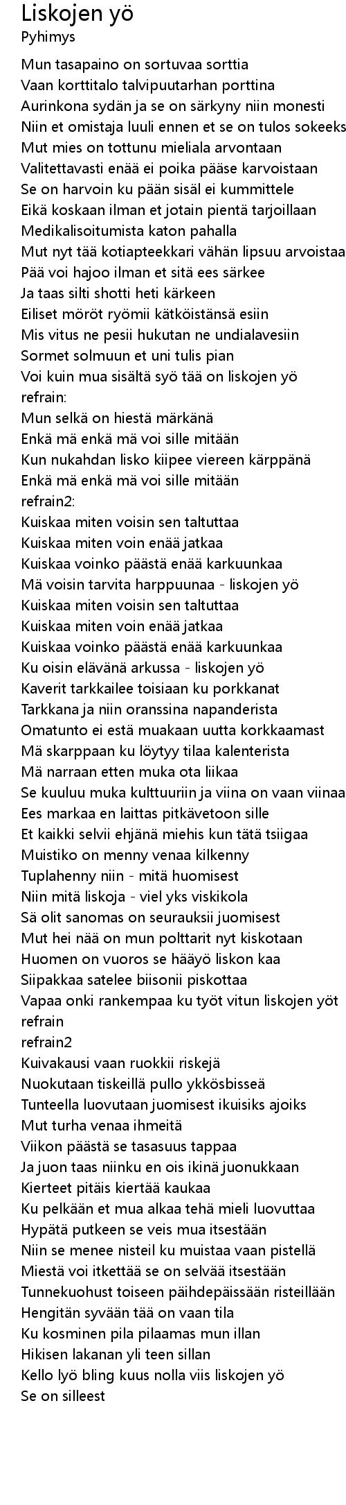 | Voi kuin mua sis lt sy t on liskojen y | |
