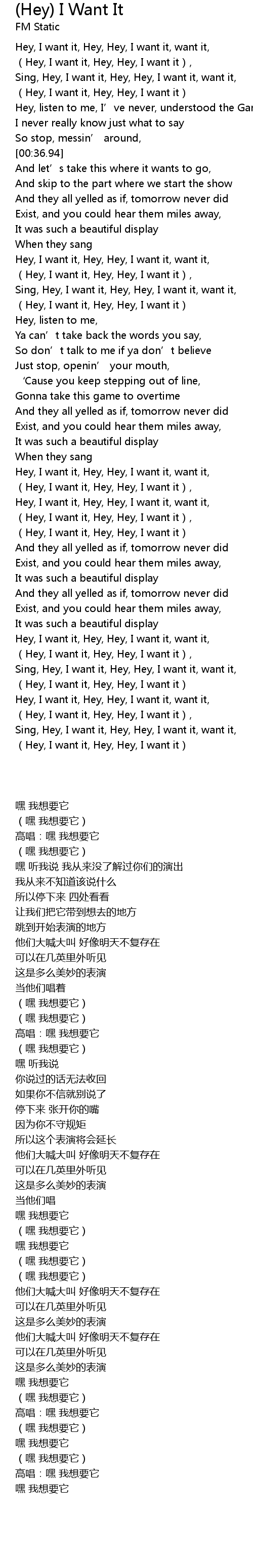 | [02:44.36] | (Hey, I want it, Hey, Hey, I want it), |