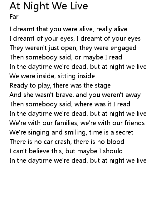 In the daytime we're dead, but at night we live |