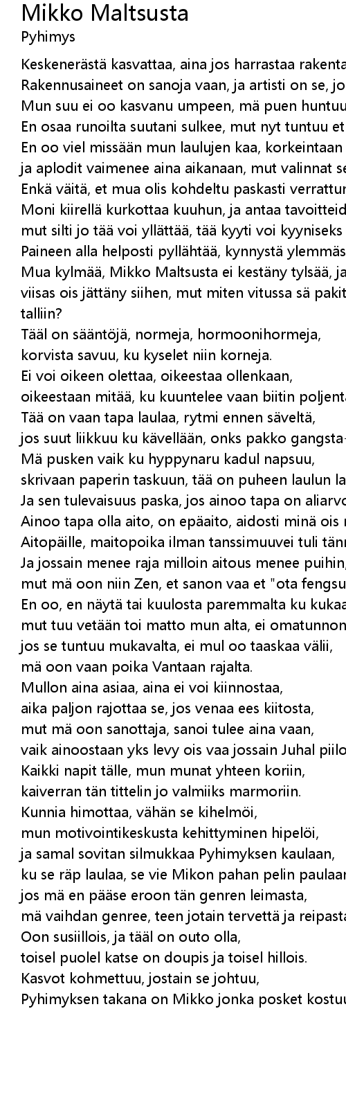 | Song | Mikko Maltsusta |