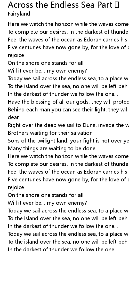 Today we sail across the endless sea, to a place where all were left behind |