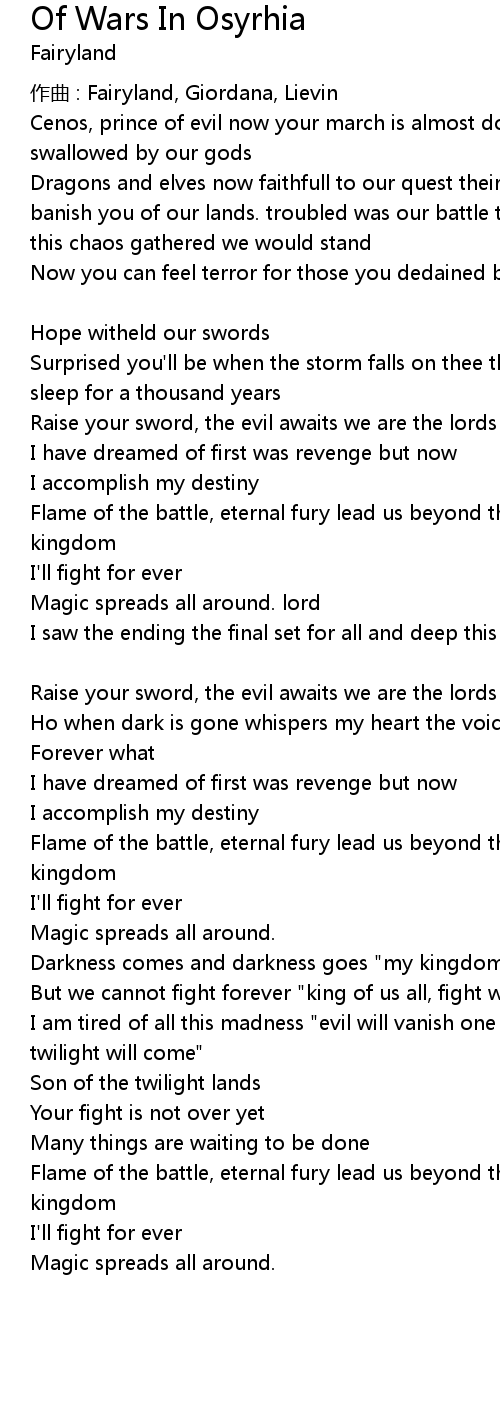 | Raise your sword, the evil awaits we are the lords of victory what | |