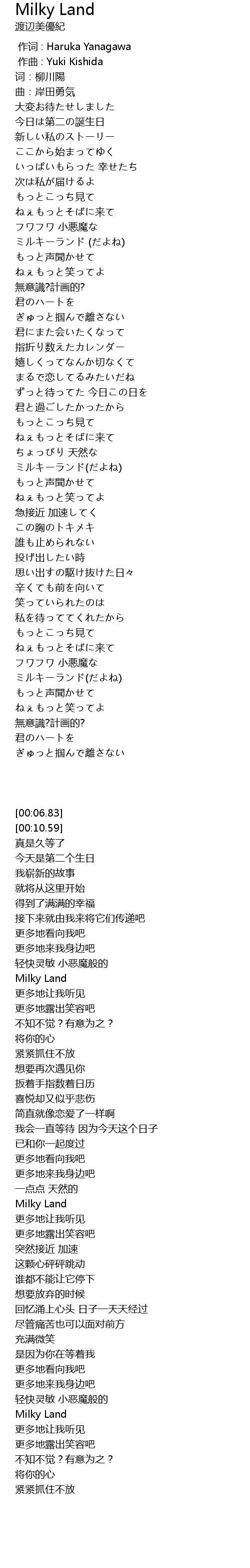| [01:05.36] | ミルキーランド (だよね) |