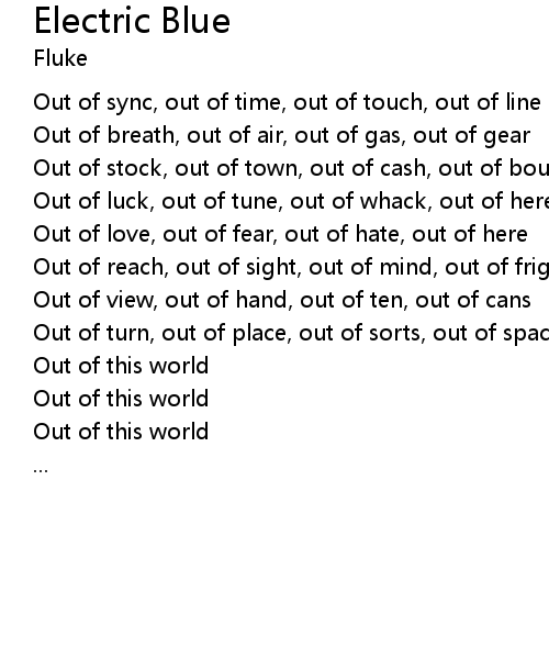 | Out of luck, out of tune, out of whack, out of here | |