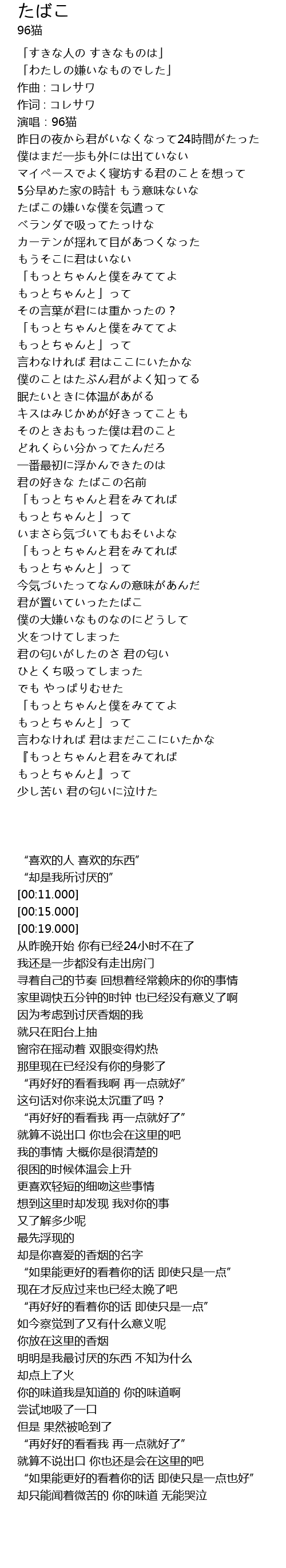 | [00:19.000] | 演唱:96猫 |