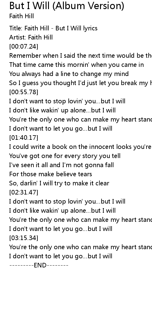 | [00:00.00] | Title: Faith Hill - But I Will lyrics |