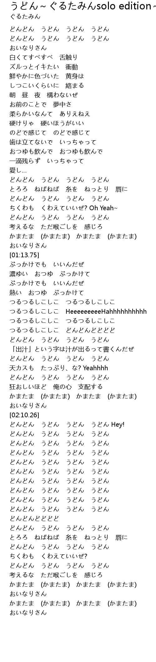 | [02:32.65] | どんどん うどん うどん うどん Hey! |