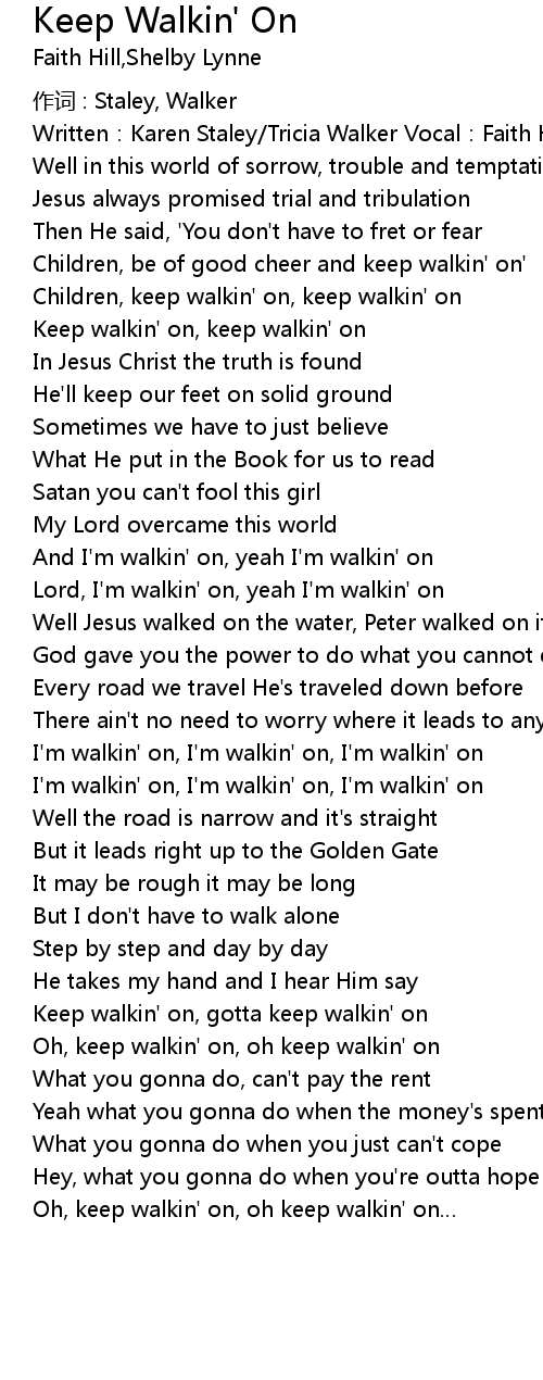 | Keep walkin' on, gotta keep walkin' on | |