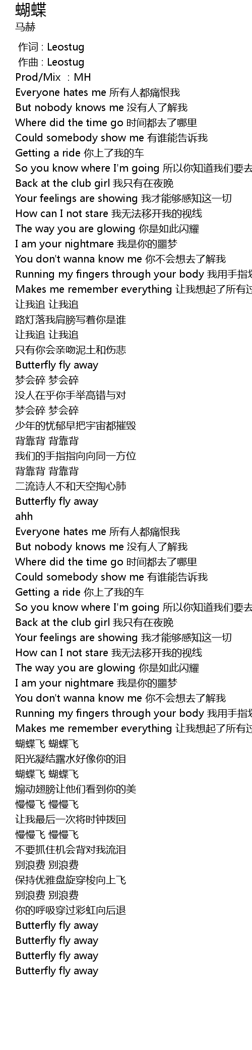 | [02:25.083] | 蝴蝶飞 蝴蝶飞 |