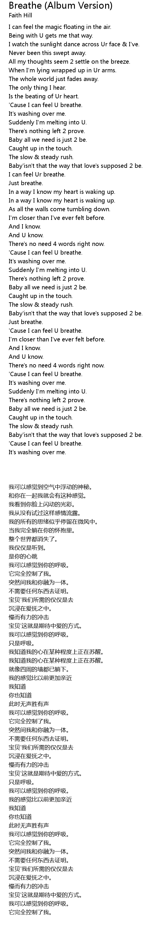 I can feel Ur breathe. |