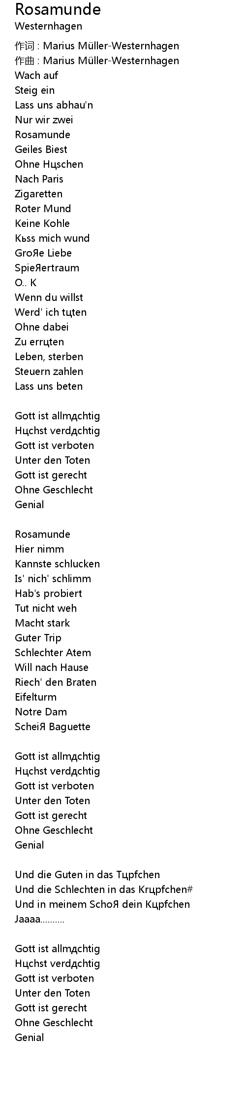 | 作词 : Marius Müller-Westernhagen | |