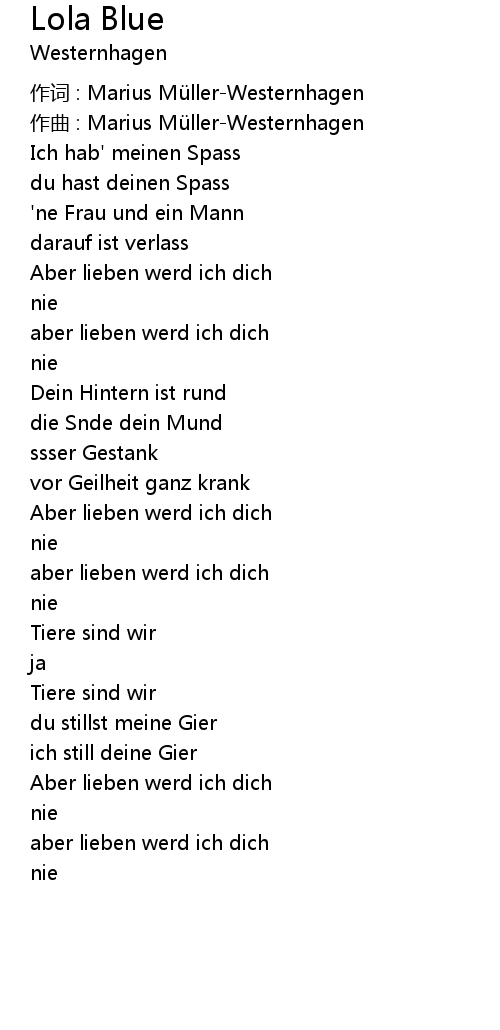 | 作词 : Marius Müller-Westernhagen | |
