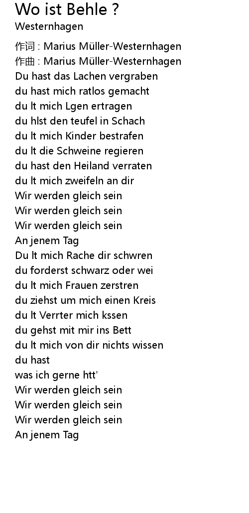 | 作词 : Marius Müller-Westernhagen | |