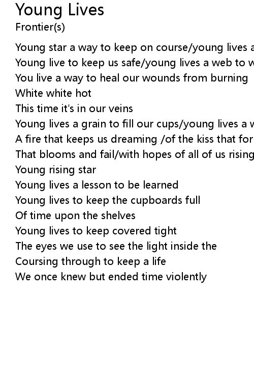 Young lives a grain to fill our cups/young lives a wave of fuel to burn |