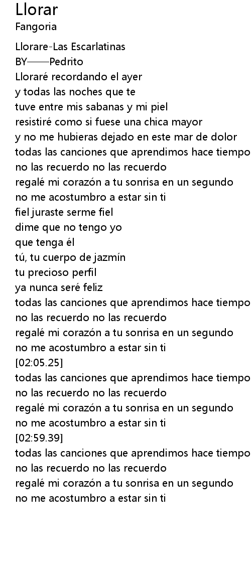 | [00:00.00] | Llorare-Las Escarlatinas |