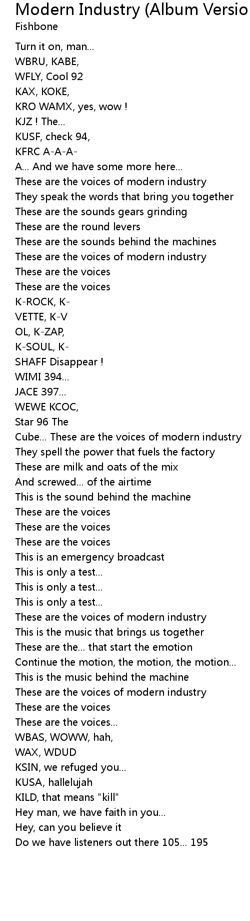 | These are the voices of modern industry | |