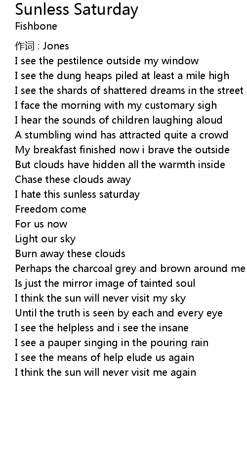 | I hate this sunless saturday | |