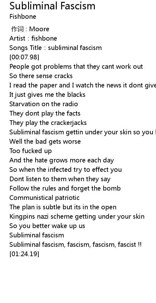 | [01:21.62] | Subliminal fascism, fascism, fascism, fascist !! |