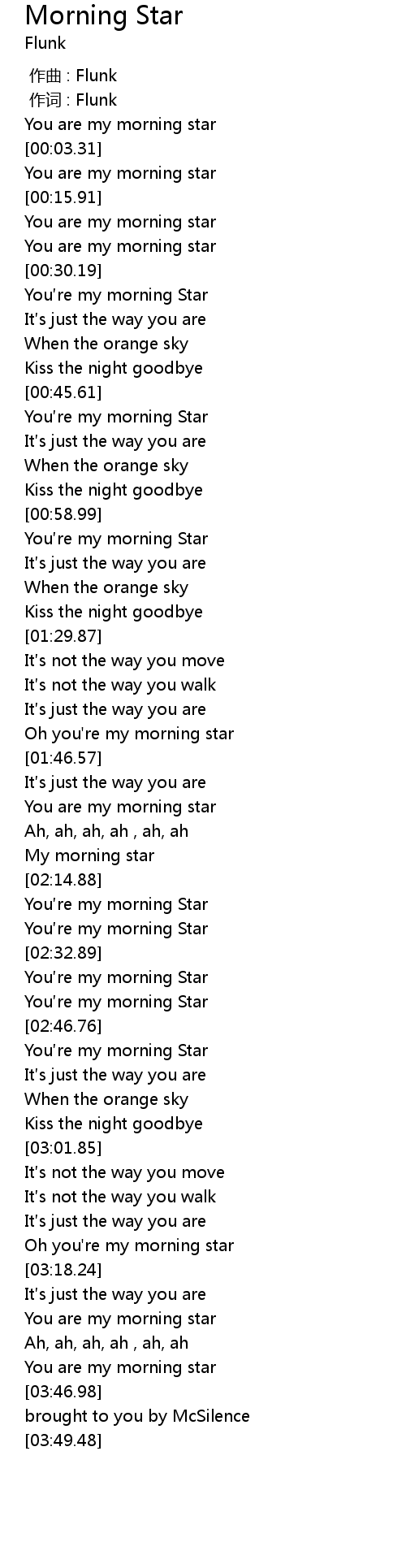 | [03:24.88] | You are my morning star |