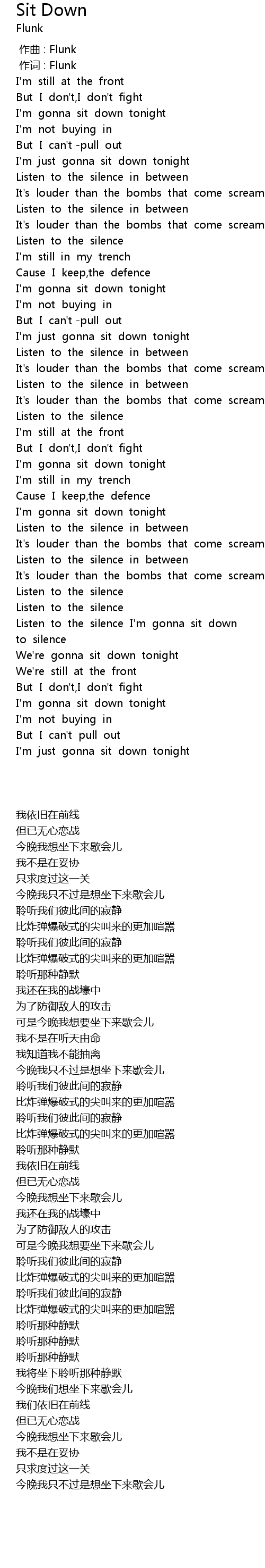 | [04:13.837] | Listen to the silence I' m gonna sit down |