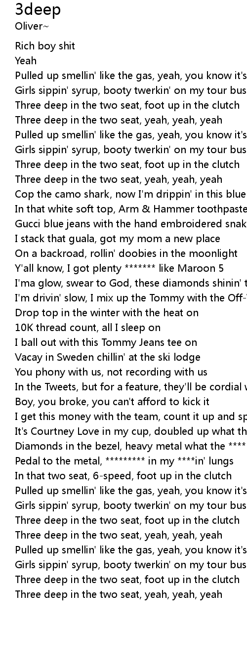 Girls sippin' syrup, booty twerkin' on my tour bus |