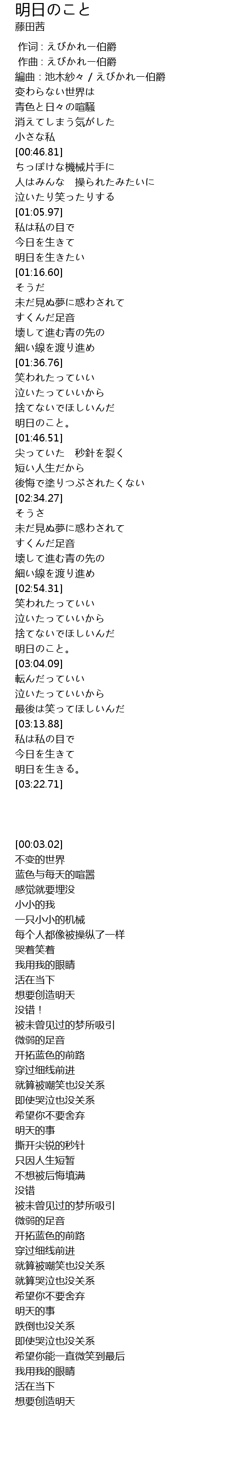 | [02:16.01] | 尖っていた 秒針を裂く |