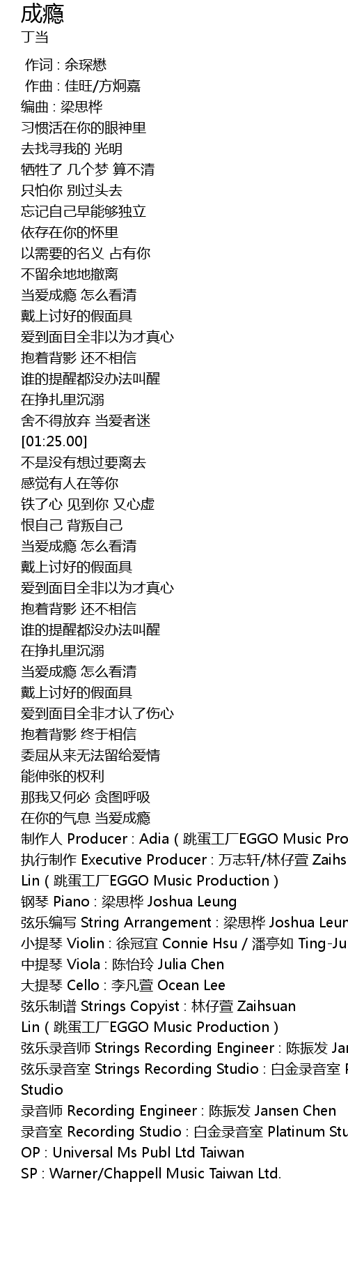 | [03:10.85] | SP : Warner/Chappell Music Taiwan Ltd. |
