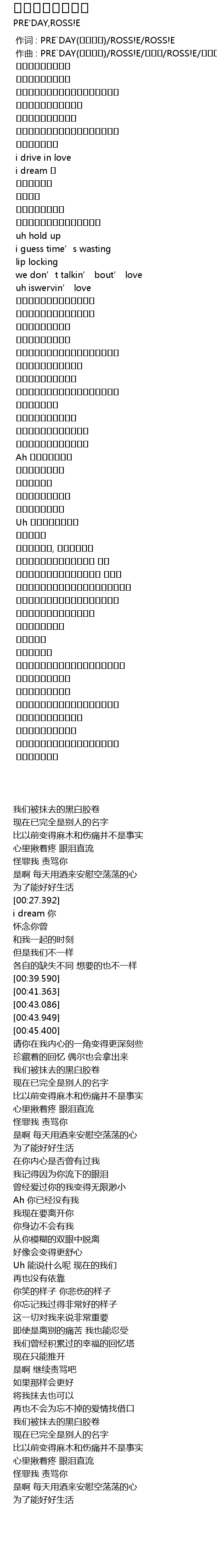 | [00:00.000] | 作词 : PRE`DAY(프리데이)/ROSS!E/ROSS!E |