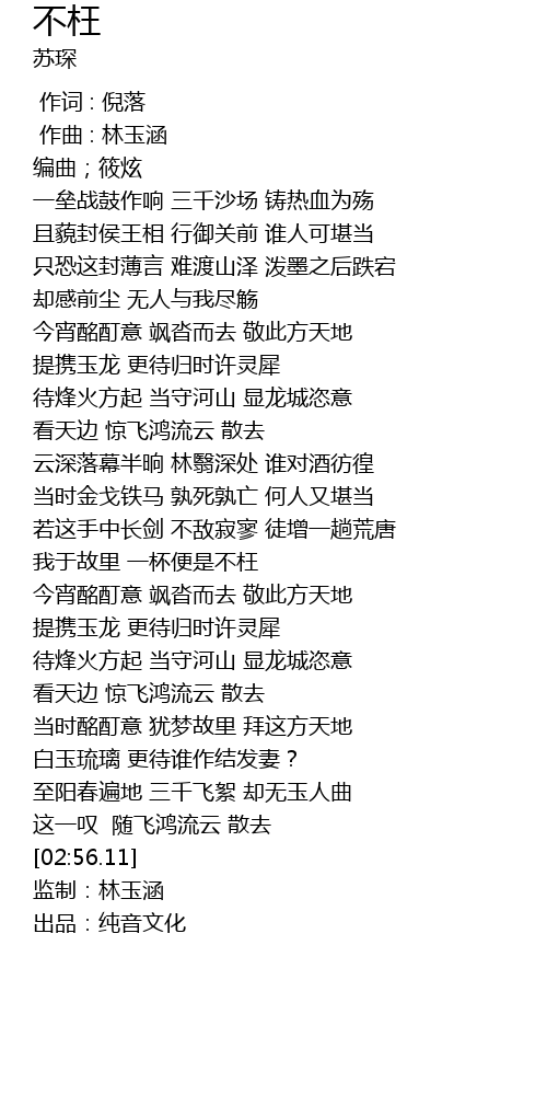 | [01:55.76] | 我于故里 一杯便是不枉 |