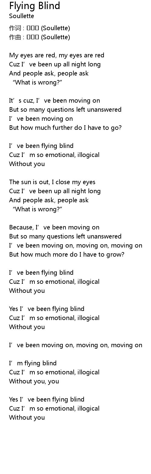 | Yes I' ve been flying blind | |