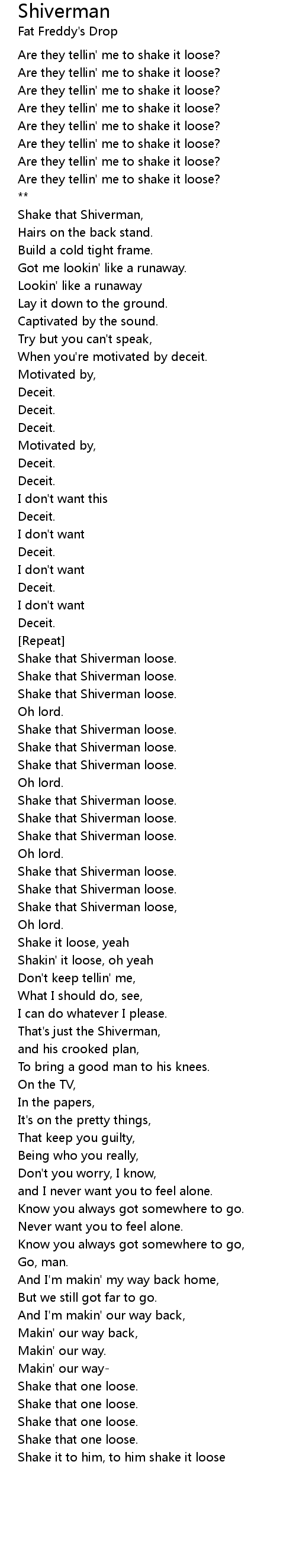 Shiverman Lyrics