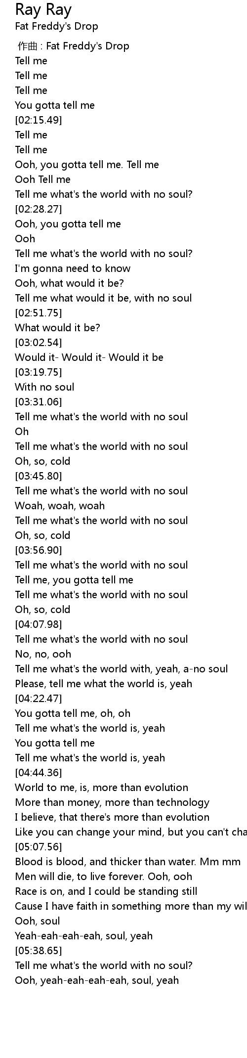 | [04:13.88] | Tell me what's the world with, yeah, a-no soul |