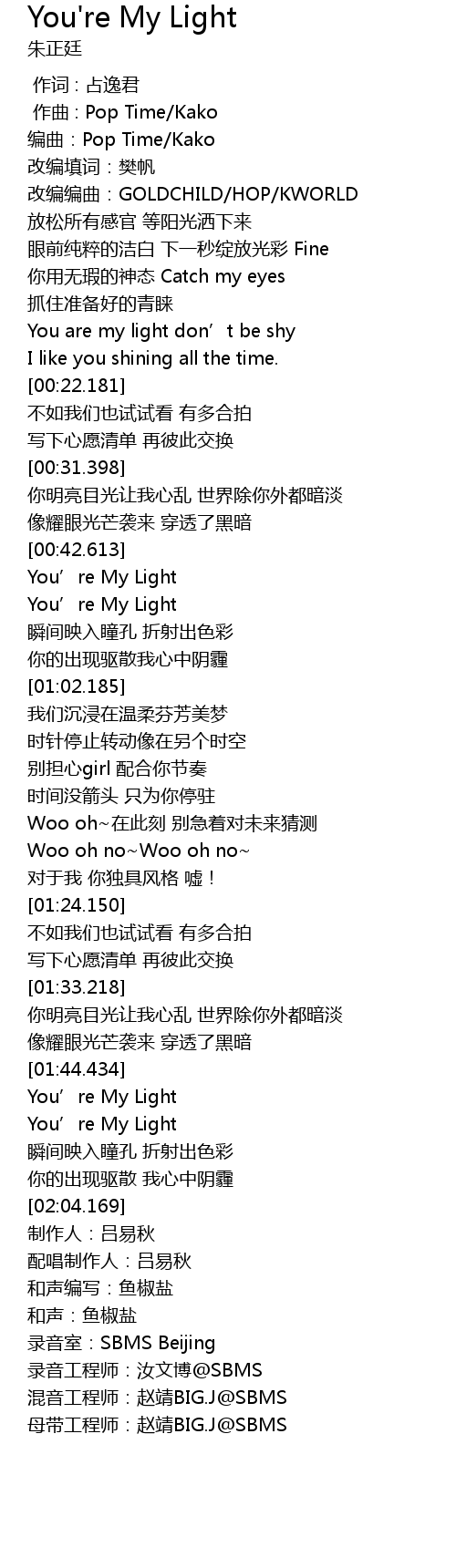 | [02:04.902] | 录音室:SBMS Beijing |