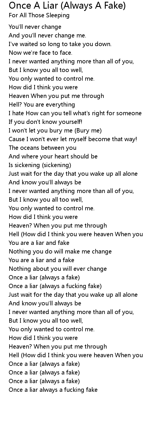 Once a liar (always a fucking fake) |