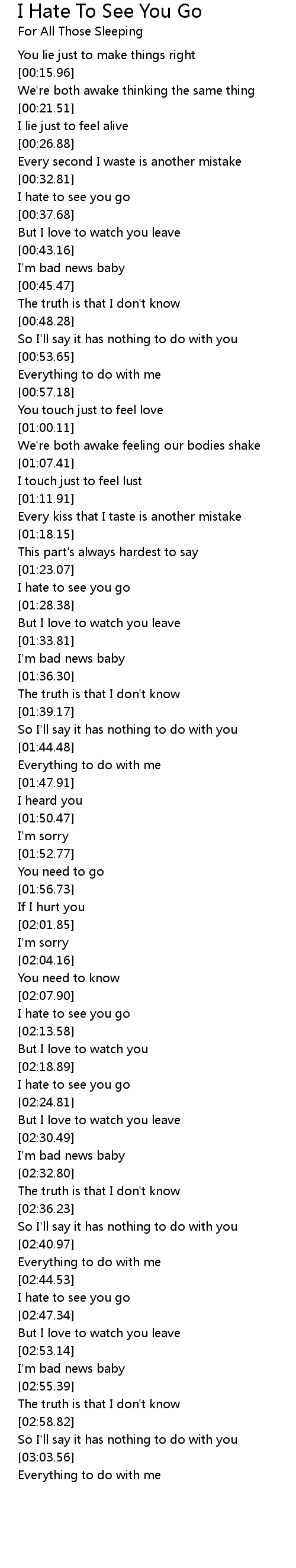 But I love to watch you leave |