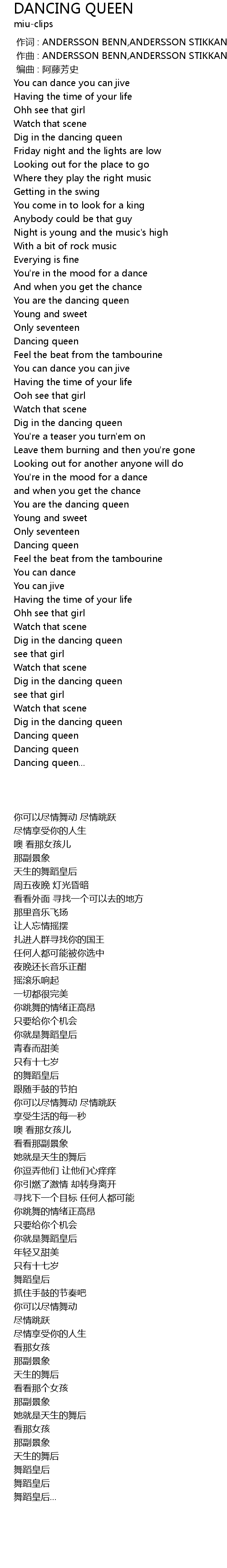| [02:31.929] | Dancing queen |