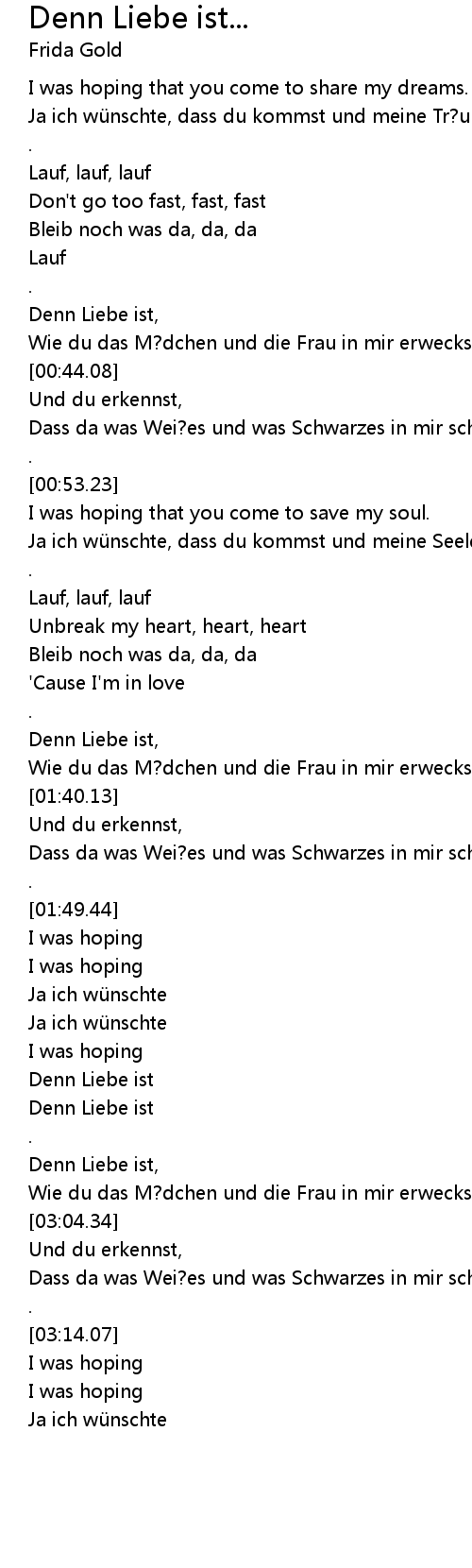 | [02:59.77] | Wie du das M? dchen und die Frau in mir erweckst |
