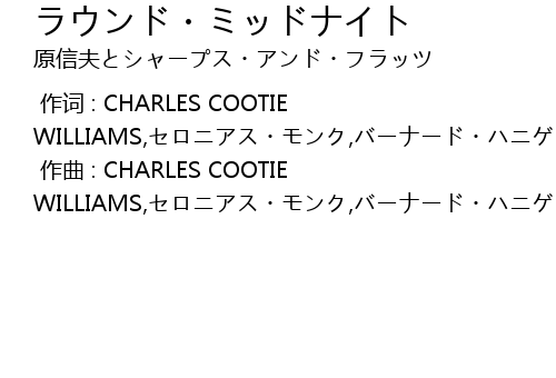 | [00:00.000] | 作词 : CHARLES COOTIE WILLIAMS,セロニアス・モンク,バーナード・ハニゲン |