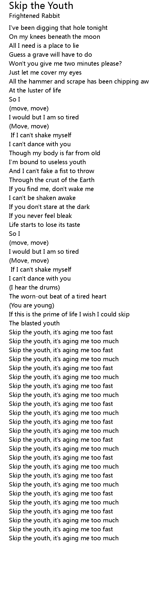 Skip the youth, it's aging me too much |
